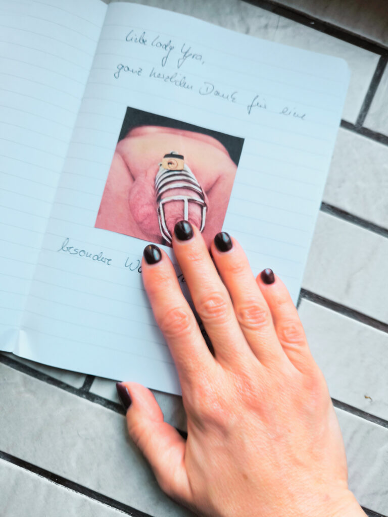 Die Domina wird zur Dirigentin. Der Stock in ihrer Hand, Taktstock und Lustinstrument zugleich. Und ich, ich darf ihr Orchester sein. Wie es ihr beliebt, dirigiert sie Forte oder Piano. Eine künstlerische Pause entsteht. Dann endlich, die Dirigentin schwingt wieder den Stock. Mein Körper vibriert. Meine Finger bewegen sich. Ob sich noch mehr bewegt? Gar ein Bass ertönt? Alles ist nach innen gerichtet. Den Schmerz zu spüren und in ihm aufzugehen … sich mit ihm zu vereinen … nach dem nächsten Schlag zu lechzen, nur um zu spüren, wie sich Schmerz und Lust vereinen. Welch ein Gefühl, welch ein Moment. Vielleicht auch sichtbar wird. Für alle sichtbar? Schaut her, das bin ICH.